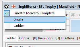 Per attivare le modalità di visualizzazione occorre fare click sull'immagine rappresentante lo sport e selezionare la voce corrispondente alla propria scelta.