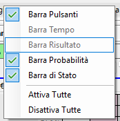 Nella Finestra Mercato possiamo distinguere le zone elencate di seguito, la cui visibilità è configurabile sia dalla finestra Opzioni, sia cliccando con il tasto destro su una parte libera della finestra stessa, ottenendo il seguente menu contestuale: