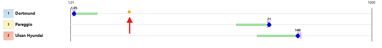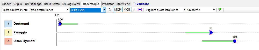 In questa modalità le selezioni vengono rappresentate sulle righe mentre il range di quote da 1,01 a 1000 è rappresentato sull'asse orizzontale.